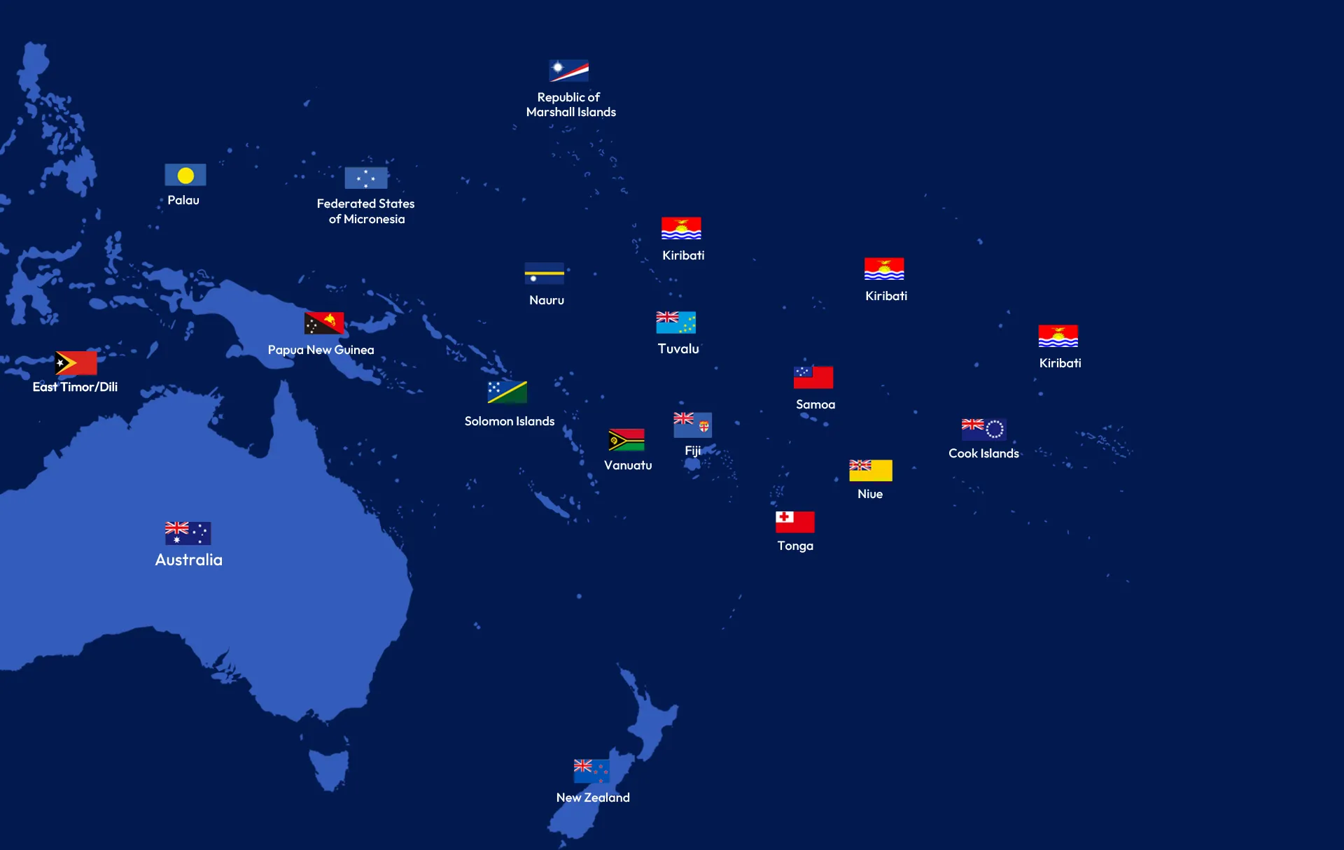 Couvrant globalement les principales nations et territoires insulaires du Pacifique Sud
